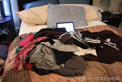 I have been doing laundry for days now and all the kids clothes are clean. The first thing I did was putting all of Isabel’s clothes on our bed and sort them. She got to point out a few of her favorite clothes and I got to put away a few items that she has outgrown. Seriously that girl needs to stop growing, we just did this a month ago too.